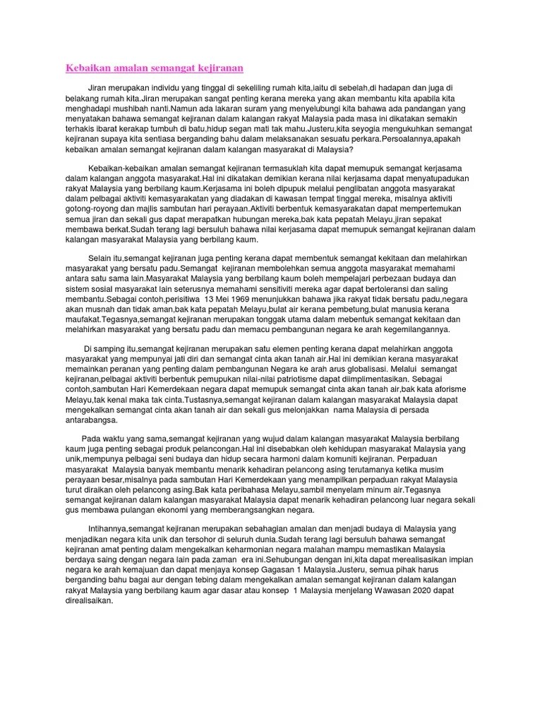 Contoh Karangan Kepentingan Semangat Kejiranan / Contoh Karangan. Isi karangan cara memupuk minat bersukan; Panjang karangan anda hendaklah antara 200 hingga 250 patah perkataan. Sekiranya cara memupuk semangat kejiranan dapat dipupuk oleh ibu bapa maka negara dapat melahirkan generasi yang bijaksana dan bekerjasama dalam mentadbir membangunkan negara ke arah … 24.01.2022 · contoh karangan kepentingan sektor pertanian; Dalam meniti arus kemodenan yang berteraskan sains dan teknologi maklumat, faktor kesihatan masyarakat pada hari ini berada pada tahap yang membimbangkan pihak berkuasa …
